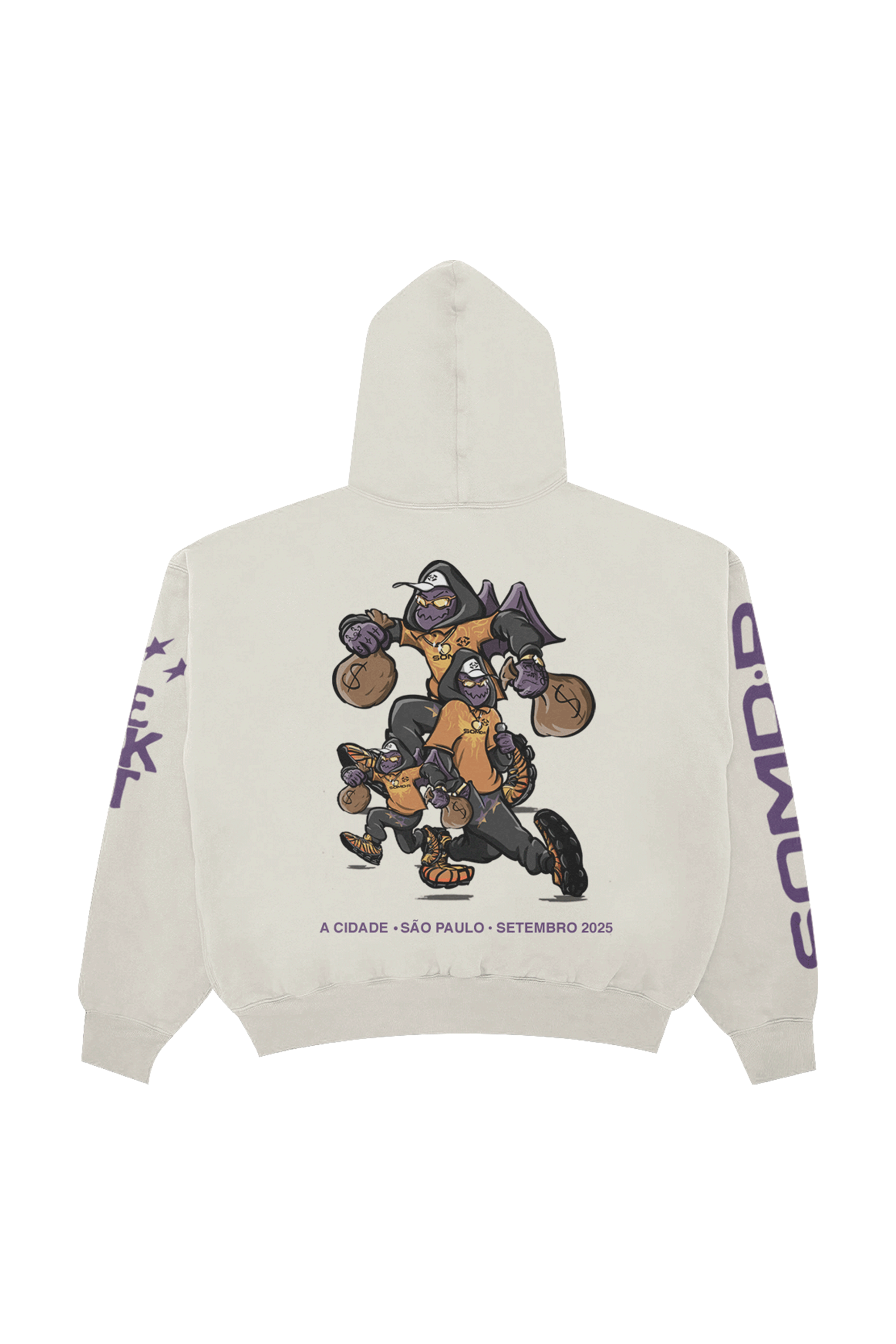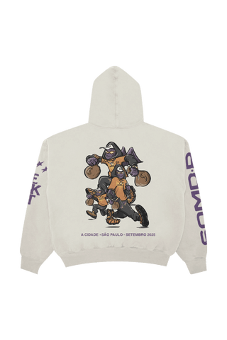 Blusa de moletom composta por algodão e poliéster, com gramatura de 340 g.